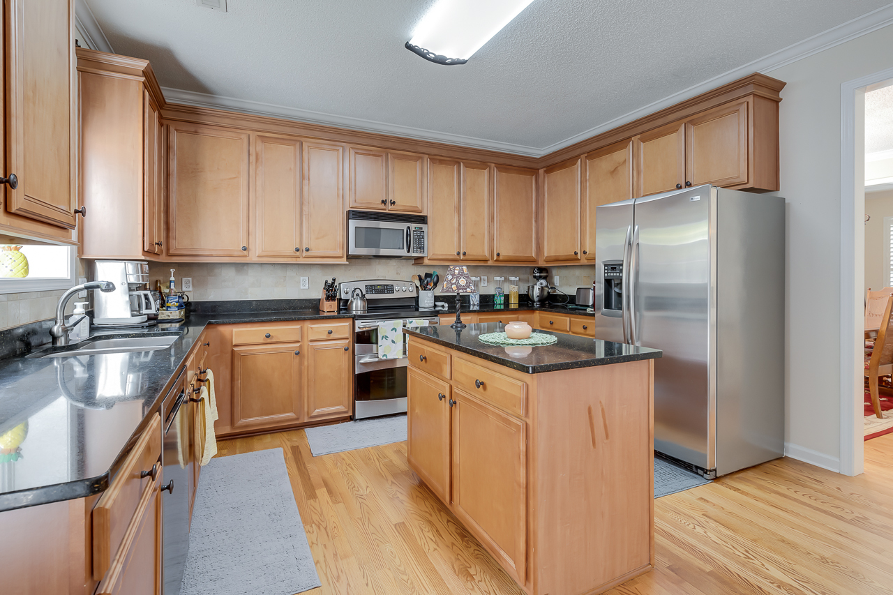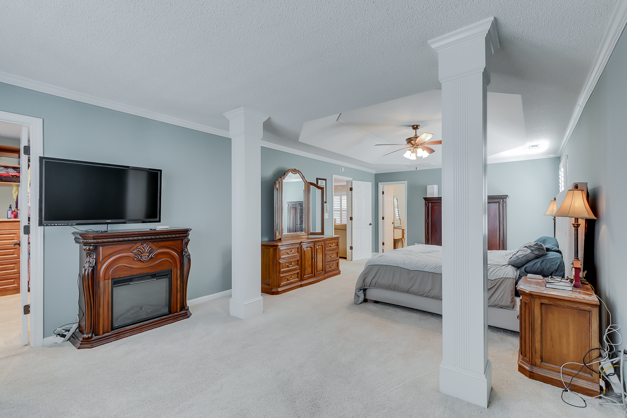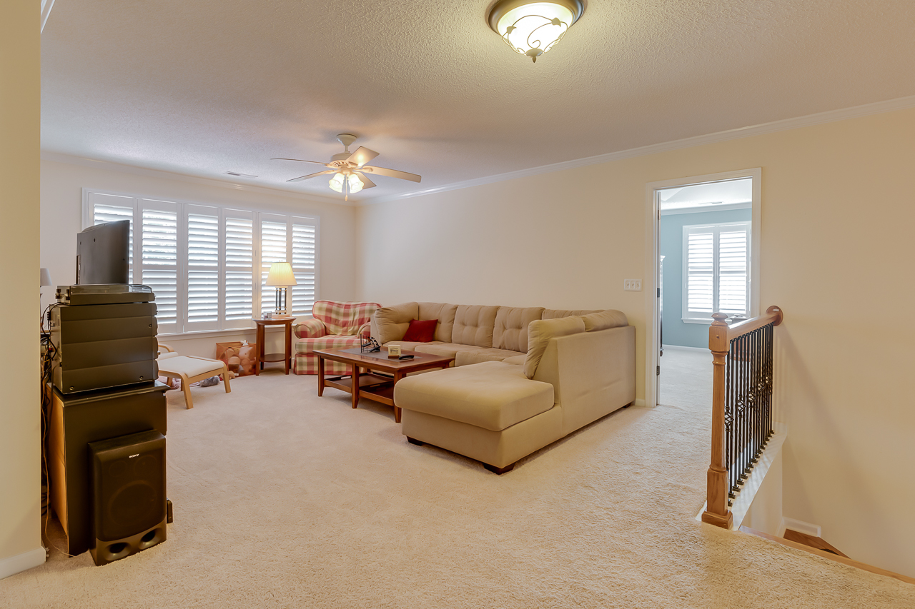 The open floor plan offers plenty of space that includes a large kitchen that features lots of cabinets, as well as ample counter space and a center island. Upstairs are 4 bedrooms, a large loft, and the laundry room. The master suite features a cozy sitting area, a custom designed closet, and a vanity with granite countertops. The shower is tiled as well as the surrounding walls of the large garden tub. Upgrades include iron railings on the porches, plantation shutters in all rooms, hardwood flooring throughout the main floor. Nice touches have been added such as, crown molding in all rooms, and a marble surrounded fireplace.